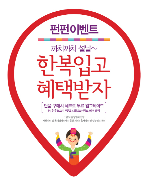 대한민국 대표 QSR(Quick Service Restaurant) 브랜드 롯데리아가 한복을 입고 매장을 방문한 고객에 한해 햄버거 구매 시 세트메뉴로 업그레이드 해주는 '펀펀이벤트'를 실시한다.