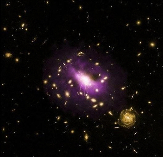 나사 측은 "이 사진은 찬드라의 X선 관측 부분과 허블우주망원경의 가시광 관측 영역을 합쳐 만든 이미지"라며 "정확한 규모를 측정하기 힘들지만 역대 발견된 것 중 가장 큰 질량을 가진 블랙홀 중 하나"고 슈퍼 블랙홀에 대해 설명했다.