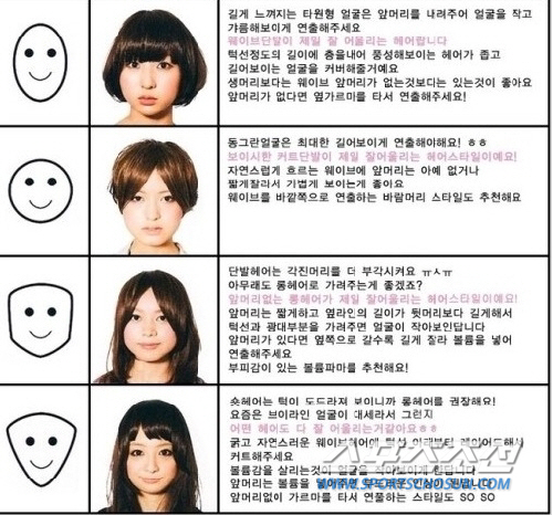 공개된 사진에 따르면 "타원형 얼굴은 앞머리를 내려라, 동그란 얼굴은 최대한 길어보이게 연출해라, 각진 머리는 단발헤어로, 턱이 뾰족한 얼굴형은 롱헤어를 권장한다" 등의 내용이 담겨 있어 눈길을 끌었다.