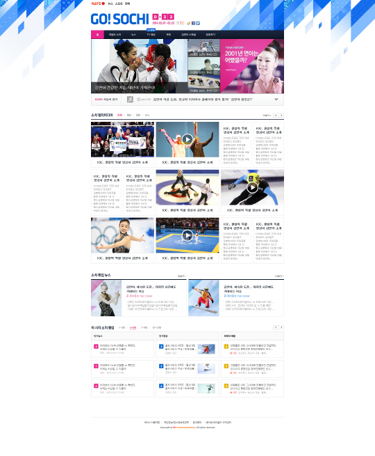 특집페이지(http://sports.news.nate.com/sochi2014)에서는 실시간으로 전하는 올림픽 관련뉴스 외에도 소치올림픽 상세일정 및 경기결과 등을 한 눈에 확인할 수 있는 '데일리소치'를 비롯, 놓칠 수 없는 현장의 감동을 생생하게 전하는 유무선 고화질 생중계/하이라이트 동영상 등 그 어느때보다도 풍성한 볼거리들로 네티즌들의 눈과 귀를 사로잡을 예정이다.
