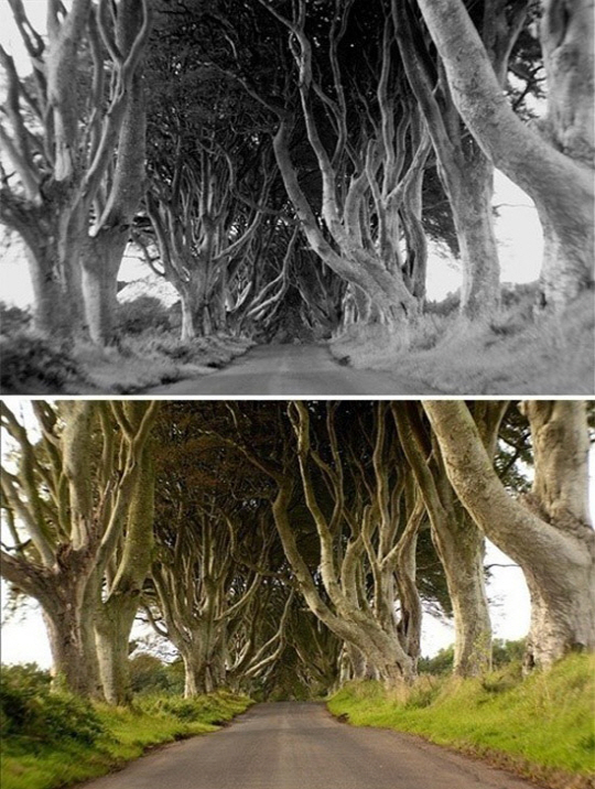 이곳은 아일랜드 북부 앤트림 카운티 부근에 있는 '다크 헤지스'라는 이름의 숲길로 지난 18세기 스튜어트가가 너도밤나무를 심어 저택으로 이르는 길을 꾸몄는데, 수백 년이 지난 지금 신비한 분위기의 숲길이 조성됐다.