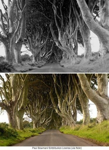 공개된 사진 속에는 신비롭고 환상적인 분위기의 숲길이 담겨있다. 이 숲길은 아일랜드 북부의 앤트림 카운티 부근에 위치한 '다크 헤지스'라는 이름의 길로, 이 나무들은 18세기에 심은 나무로 알려졌다.