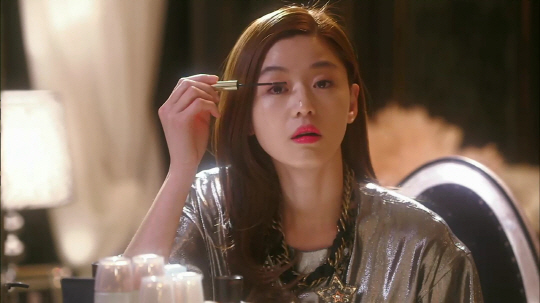 폭풍 인기를 불러일으키고 있는 드라마 SBS 수목극 '별에서 온 그대'(이하 별그대)의 전지현이 이번엔 강렬한 바이올렛 빛이 도는 립 컬러 등으로 다시 한번 시선을 모았다.