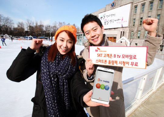 SK텔레콤(대표이사 사장 하성민)이 2014 소치 동계올림픽의 국내 선수의 건승을 기원하며, 자사 고객 중 'Btv 모바일' 월정액 상품 가입 고객이 스마트폰으로 올림픽 방송 시청 시 LTE 데이터 통화료를 무료 제공하는 이벤트를 10일부터 23일까지 14일 간 진행한다.