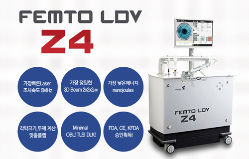 크리스탈플러스 라식의 상위 버전인 Z4는 유럽 최대의 펨토세컨레이저 제조사인 스위스 Ziemer사의 장비로, FDA, CE, KFDA로부터 안전성을 입증 받았으며 전세계적으로 100만 케이스 이상의 시술 경험을 가지고 있다.