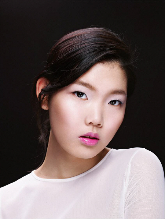이중 연보라색 입술과 투명한 화이트 아이메이크업을 위해선 피부는 깔끔하고 화사하게 연출한 후, 컨실러로 입술 전체를 가볍게 발라 깔끔하게 입술톤을 정리해 준다. 그 위에 연보라 컬러의 립스틱으로 입술을 자연스럽게 채워준다.