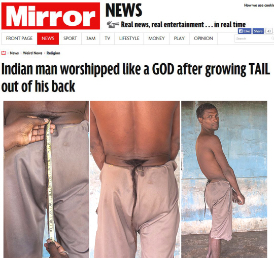 하지만 의사들은 "그의 등뒤에 나온 것은 꼬리가 아닌 선천적인 기형의 일종"이라며 "척추에서 척수가 새어나와 신경을 눌러 기형적인 형태로 자란 것으로 추측된다"고 밝혔다. 이어 "더 정밀한 검진과 치료를 권한다"고 덧붙였다.