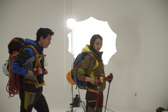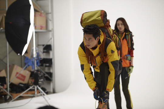 정우성-허여진이 레드페이스 화보 촬영에서 전문 산악인의 느낌을 살렸다. 사진제공=레드페이스