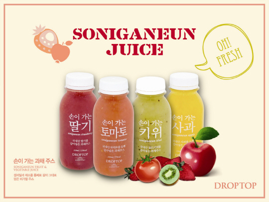 프랜차이즈 커피전문점 드롭탑이 비가열 생과즙 과채 주스인 '손이 가는 주스' 4종을 출시했다.