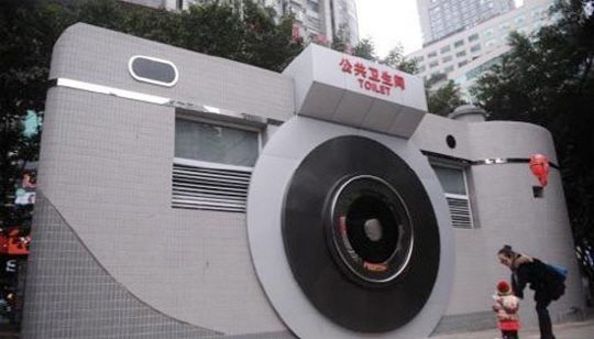 카메라 닮은 화장실은 중국 충칭시의 대형 디지털기기 상가 인근에 있는 공중 화장실로 알려졌다.