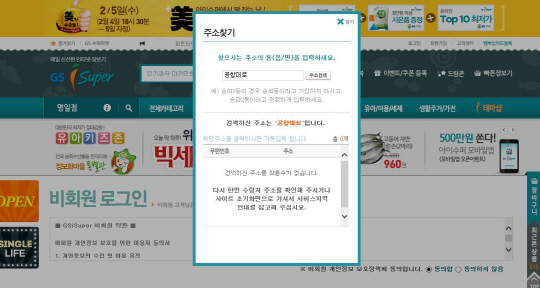 GS그룹의 대표적인 생활 밀착형 인터넷 쇼핑몰인 GS슈퍼마켓의 'GSi슈퍼'는 롯데마트보다 더 심했다. GSi슈퍼는 편리한 인터넷 장보기를 추구한다지만 배송지 검색에서 도로명 주소 검색 기능은 아예 없고, 옛 지번주소를 통해서만 입력이 가능하다.