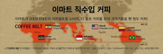 이로써 이마트는 브라질, 콜롬비아, 에디오피아, 하와이에 이어 케냐, 인도네시아로 이어지는 반값 커피벨트를 완성했다고 설명했다.