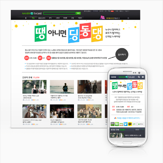 네이버의 동영상 서비스 TV캐스트는 누구나 쉽게 참가하고,심사하는 온라인 노래자랑 '땡 아니면 딩동댕'을 진행한다.