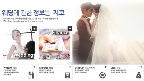 지디에프코리아의 각 서비스에서도 이러한 고객 신뢰 위주의 프로그램들을 살펴볼 수 있다. 먼저 웨딩의 경우 기존 시장에서 형성되어 오던 웨딩플래너의 한계점을 극복했다. 기존에는 웨딩플래너와의 계약 시 해당 웨딩플래너가 속한 컨설팅 회사의 상품만을 선택해야 했다. 그러나 지디에프코리아의 웨딩 상품은 각 웨딩플래너들의 상품을 먼저 비교해볼 수 있는 편의가 제공된다. 고객이 보다 더 폭 넓게 웨딩플래너를 선택할 수 있는 자유도를 구축한 것.