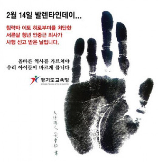경기도교육청이 2월 14일이 발렌타인데이가 아닌 안중근의사 사형선고일이라는 사실을 대대적으로 광고했다.
