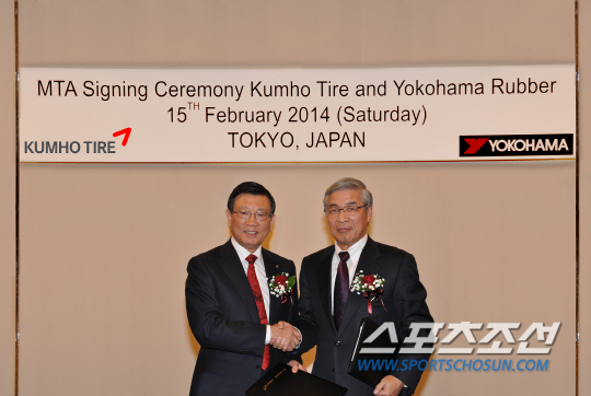 금호타이어는 지난 15일 일본 요코하마와 글로벌 경쟁력 강화를 위해 기술 제휴에 대한 본계약을 체결했다고 밝혔다. 이날 조인식은 박삼구 금호아시아나그룹 회장과 나구모 타다노부 요코하마 고무 회장 등이 참석한 가운데 일본 도쿄에서 열렸다.