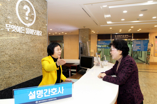 환자의 궁금증을 해소하고 진료 만족도와 편의성을 높이기 위해 마련한 설명간호사제도는 20~30년 임상 경험이 있는 경력 간호사 2명과 안내직원 2명, 그리고 동행서비스 봉사자 등으로 구성되어 운영된다.