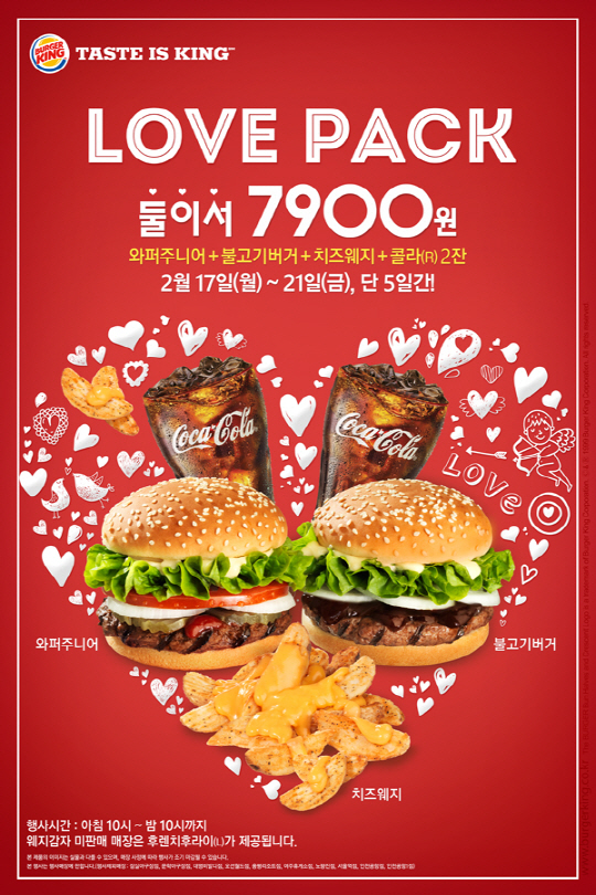 버거킹이 17일부터 21일까지 한정판 '러브팩'을 선보인다.
