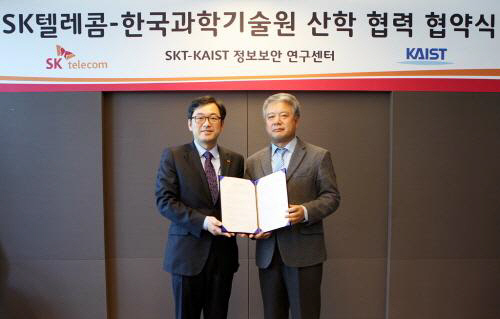 SK텔레콤(대표이사 사장 하성민과 한국과학기술원(KAIST, 총장 강성모)은 정보보안 분야 산학협력의 이정표가 될 'SK텔레콤-KAIST 정보보안 연구센터'의 설립과 운영을 위한 양해각서(MOU)를 18일 체결했다고 밝혔다.