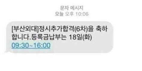 부산외대는 경주 마우나오션리조트 붕괴 사고가 발생한지 1시간가량이 지나 정시모집 6차 추가합격 문자를 발송했다.