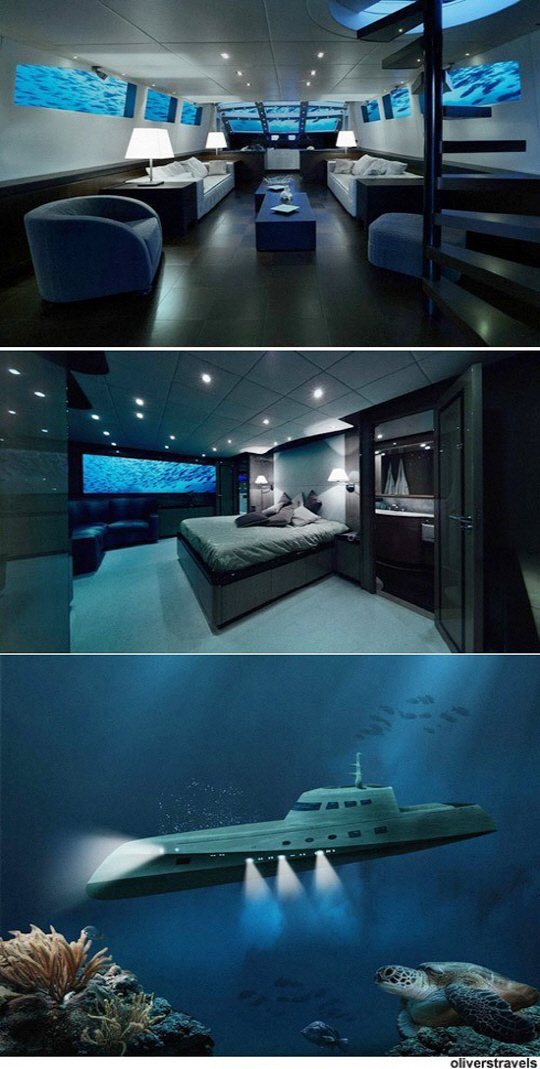 '초호화 잠수함 호텔'은 전용 요리사가 만드는 최고급 요리와 고급 샴페인, 초대형 평면 TV, 안락하면서도 화려한 침대, 호화스러운 욕실과 수중 풍경을 감상할 수 있다.