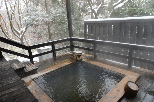 ◇일본 럭셔리료칸의 대명사격인 호시노리조트의 '아소 카이'는 온천 료칸 휴식의 묘미를 맛볼 수 있는 곳이다. 마침 지난 2월 중순 쿠로가와 산간지대에는 폭설이 내려 카이아소 료칸이 온통 설국으로 변신했다. 하얀 눈을 이고 있는 삼나무-굴참나무숲 속 객실 테라스 노천탕 또한 일품이다. 한기를 이기며 뜨끈한 노천탕에 몸을 담그자면 과연 휴식의 진수를 실감하게 된다.
