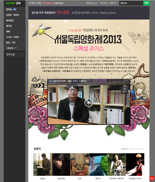 네이버(대표이사 김상헌)가 한국독립영화협회(이사장 임창재, 이하 한독협)와 제휴를 맺고 개설한 '온라인 인디극장'을 19일 선보인다.