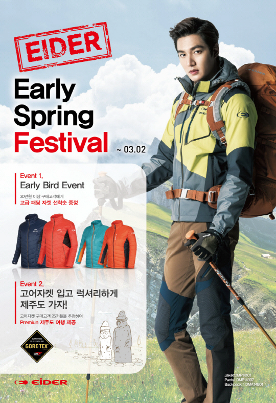 프랑스 아웃도어 브랜드 아이더(www.eider.co.kr)가 3월 2일까지 '아이더 얼리 스프링 페스티벌(Eider Early spring Festival)' 이벤트을 진행한다.