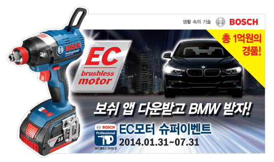 보쉬 전동공구사업부 관계자는 "독일 엔지니어링 기술의 결정체인 보쉬 EC 브러시리스 모터 전동공구 라인업 확대를 기념해 그 동안의 고객 성원에 보답하고자 이번 이벤트를 진행하게 됐다" 며 "유용한 정보와 기능이 담긴 '보쉬 툴박스' 모바일 앱도 다운받고, BWM와 명품 EC모터 제품 등 푸짐한 경품도 얻는 행운이 함께 하길 바란다"고 말했다.