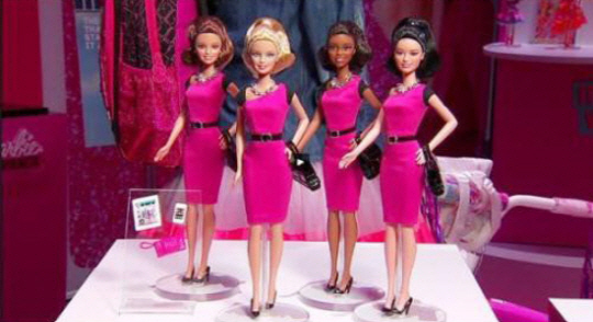 바비 인형 출시 55주년을 맞아 제작된 이 인형은 분홍색 원피스를 입고 검은색 핸드백을 들고 있는 모습으로 직장 여성을 떠올리게 한다. 금발 백인 인형 외에도 흑인과 황인 여성의 인형도 선보였다.