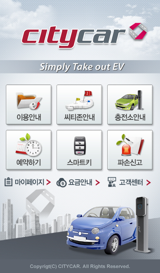 유류비가 추가로 들어가야 하는 일반 카쉐어링 서비스와 달리 유류비가 추가로 들지 않아 더욱 경제적이고 매연과 소음도 발생하지 않는 친환경 도시형 전기차 공동이용(카쉐어링) 서비스인 '씨티카'는 운전면허를 소지한 만 21세 이상의 성인이면 누구나 가입할 수 있다. 씨티카 홈페이지(www.citycar.co.kr)에서 회원 가입 후 스마트폰으로 씨티카 앱을 다운 받으면 편리하게 이용이 가능하다.