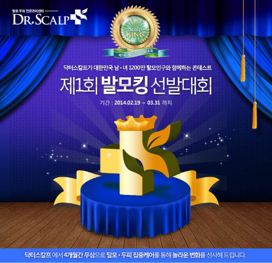 2014 제1회 닥터스칼프 발모킹 선발대회는 탈모로 고민하는 1200만 대한민국 남,녀에게 희망을 주고, 두피,탈모관리의 중요성을 알리며, 두피탈모관리 전문가로부터 전문적이고 체계적인 두피,탈모관리를 받을 수 있는 기회를 제공하고자 닥터스칼프에서 시작하게 된 프로모션 이벤트 이다.