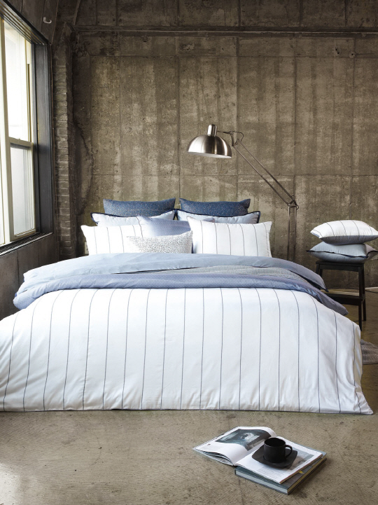 '심플라인'은 린넨과 같은 내추럴한 느낌을 표현한 제품으로 화이트, 베이지, 월넛 컬러 등 다양한 가구와 인테리어에 모두 잘 어울리는 디자인이다. 유칼립투스 나무에서 추출한 천연원료 텐셀을 사용해 수분 조절능력이 탁월하고 촉감이 부드러워 쾌적한 잠자리 제공해준다. 블루와 브라운 두 가지 색상이 있으며, 스트라이프와 솔리드 양면을 사용할 수 있다.