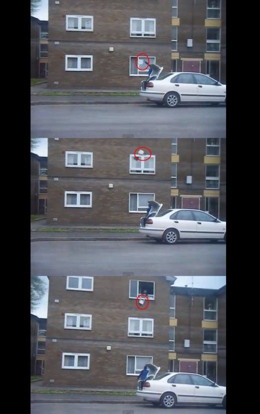 이는 맞은편 건물에 있던 주민에 의해 촬영된 것으로, 피자배달부와 고층에서 피자를 주문한 손님의 모습이 담겨있다.