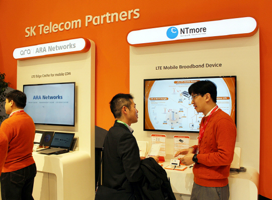 SK텔레콤(대표이사 사장 하성민)이 국내 중소기업의 글로벌 진출을 돕기 위해 24일(월) 스페인 바르셀로나에서 열리고 있는 세계 최대 모바일 전시회인 '2014 모바일 월드 콩그레스(MWC)'에 협력업체들과 함께 참여하고 있다.