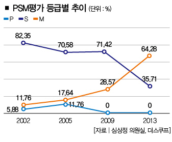 더 심각한 건 추세다. PSM평가등급이 해마다 하락하고 있어서다. PSM평가결과 추이를 보면, 2005년 11.76%에 달했던 P등급 비율은 2009년과 2013년 0%로 떨어졌다. S등급은 2005년 70.58%에서 2013년 35.71%로 반 토막 났다. M등급은 같은 기간 17.64%에서 64.28%로 크게 늘어났다. P·S등급 비율은 줄어든 반면 M등급은 가파르게 증가한 셈이다. 이 결과는 법·제도가 정한 안전기준을 현장에서 충족하지 못하고 있다는 방증이다. 박두용 한성대(기계시스템공학) 교수는 "법과 제도, 그리고 현장 사이에 존재하는 '안전 갭'이 갈수록 벌어지고 있다"고 꼬집었다. 한 공정안전관리 전문가는 "PSM을 심사하는 기준치는 기술의 발전, 사회적 요구에 따라 계속 높아지고 있는데, PSM을 이행하는 사업장(발전소)의 안전관리기술 또는 안전의식수준이 크게 발전하지 못했다"며 "심사기준은 세걸음씩 가고 있는데, 이행수준은 한걸음도 나가지 못한 것과 같다"고 지적했다.
