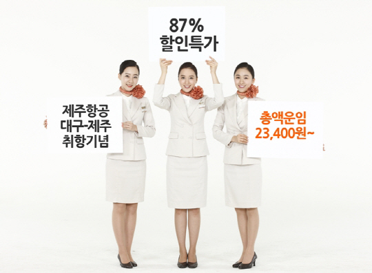 또 대구~제주 노선 취항기념으로 3월3일부터 3월31일까지 탑승 가능한 김포~제주, 부산~제주, 청주~제주 노선의 편도 항공권도 최대 76% 할인된 가격으로 판매한다.