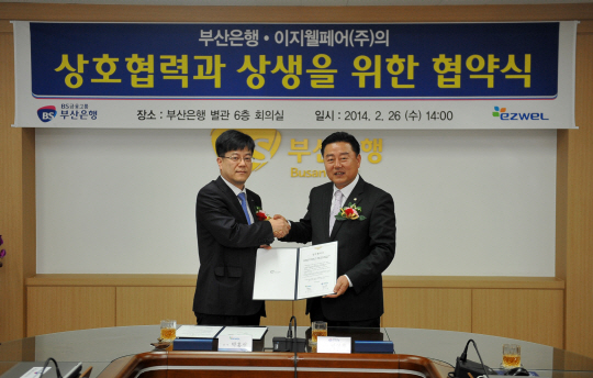 복지서비스 전문기업 이지웰페어는 26일 오후 2시 부산은행 별관에서 BS금융그룹 부산은행과 복지카드 이용 활성화 업무 협약을 체결했다.