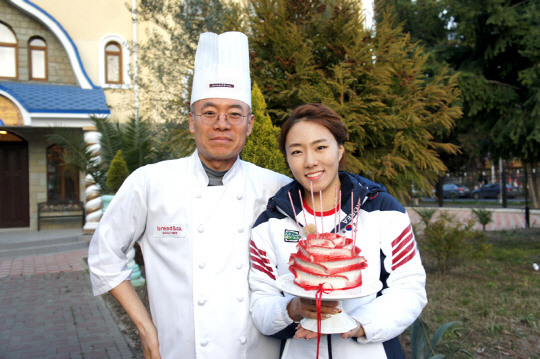 | 브레댄코는 이상화 선수를 위해 파티쉐를 급파, 소치에서 특별히 구은 케이크를 선사한 바 있다. 이때의 인연이 이어져 이상화는 3월부터 브레댄코 모델로 활동하게 된다. |