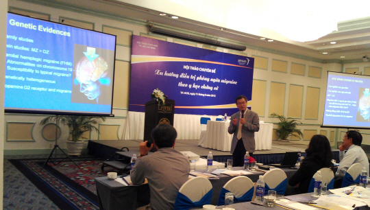 | ◇베트남 두통학회에서 강연하는 김재문회장 |