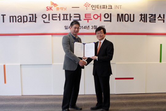 SK플래닛(사장 서진우)과 인터파크투어(대표 박진영)가 '여행, 숙박 정보 제공 사업에 관한 양해각서(MOU)'를 4일 서울 상공회의소에서 체결하고, 양 사의 고객들에게 가치있는 정보를 제공하기로 합의했다.