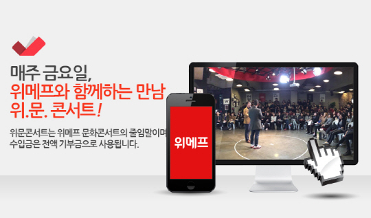 소셜커머스 위메프가 서울 강남 삼성동 사옥을 개방하고 매주 1회 오후 7시 30분 위문(위메프 문화) 공연을 연다.