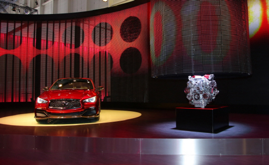 인피니티가 선보인 고성능 컨셉트 카 'Q50 오 루즈(Q50 Eau Rouge)'의 엔진이 공개됐다.