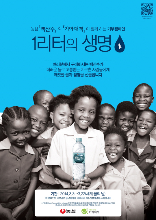 농심이 국제구호단체 기아대책과 '2014 농심 백산수와 기아대책이 함께하는 기부 캠페인 - 1리터의 생명'을 추진한다.