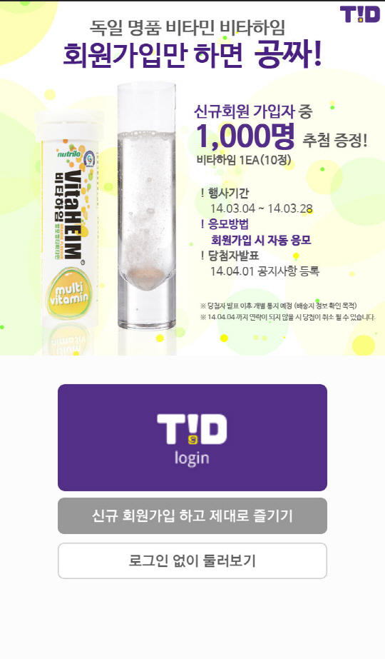 티드(TID), 신규 회원 1000명에게 명품 비타민 증정