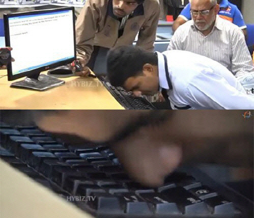 이 남자는 손가락이 아닌 코끝을 이용해 문장을 작성, 세계 기록을 갈아치웠다.