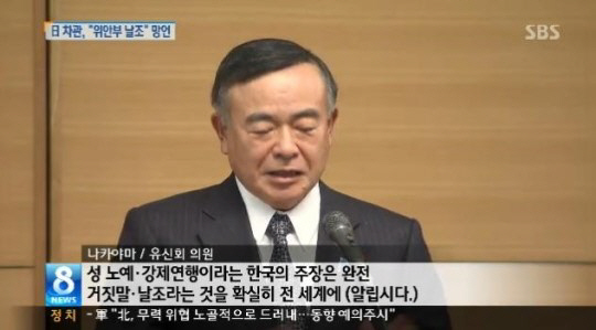 9일 아사히 신문은 일본 유신회 소속 나카야마 나리아키 중의원이 8일 한 민간단체가 주최한 지방강연회에서 위안부 문제를 꺼내 들었다고 보도했다.