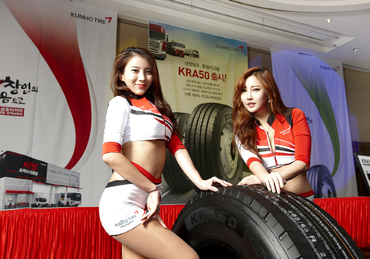 또한, 2013년 히트제품으로 대형카고 시장을 선도했던 'KRA50'을 대형덤프 및 중형카고용 규격으로 확대 출시했다. 대형덤프용 제품은 고강도 24PR을 적용하고 내구성을 강화했다. 그루브 형상 변경 및 신재료 적용으로 돌 끼임을 최소화했다. 중형카고용 제품은 국내 업계 최초로 고강도 18PR 적용 및 신개발 트레드 고무를 적용해 금호타이어의 대표 제품으로 자리매김할 것으로 기대하고 있다. 이와 함께 마일리지 성능을 타사대비 약 20% 향상시킨 대형카고 전륜용 프리미엄 신제품 'KRS55'와 고강도 PR을 적용한 'KMA21'도 출시했다.