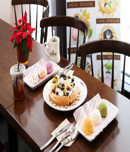 카페아이스빌은 계절의 영향을 덜 받을 수 있도록 커피와 와플 등의 전문적인 메뉴들도 추가해 신개념 글로벌 토종브랜드로 도전장을 내밀고 있다. 키위, 자두, 고구마, 자몽, 복분자, 흑미, 인삼 등 천연재료를 이용해 만든 아이스크림 종류만 36가지에 달한다. 이외에도 커피, 스무디와 와플, 케이크 등 부가메뉴도 다양하다.