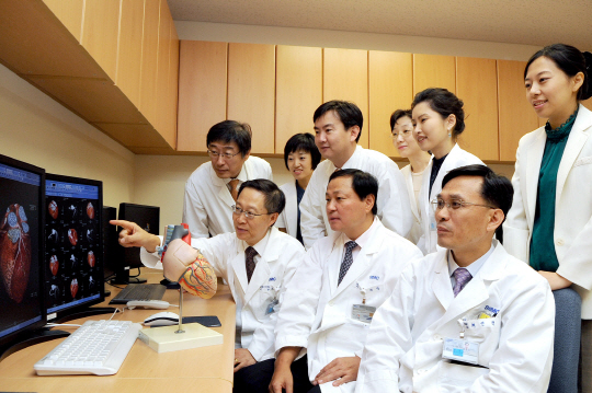 ◇오재건 심장뇌혈관 병원장이 의료진들과 다학제 회의를 하고 있다.